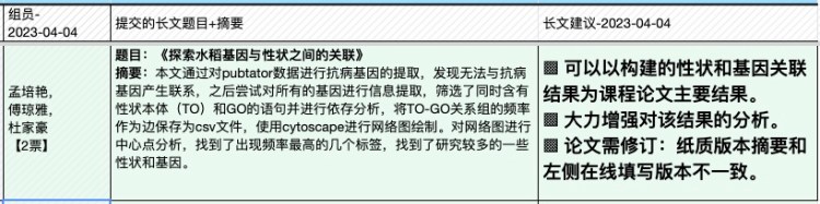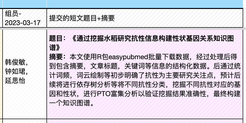 | 17, Mar 实验课 | (课程大论文短文提交日) ◎ Quiz A:算法理论考题 ◎ 实验任务三、《本体富集分析》 ◎ 专题2:《作物/疾病文献的词汇分析》 |