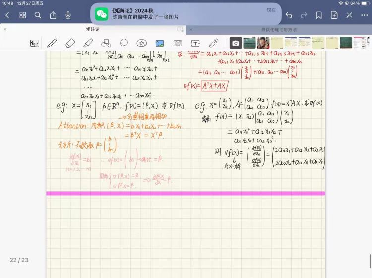 ♥ 《矩阵微分》——黑板板书和学生笔记 Dec,2024