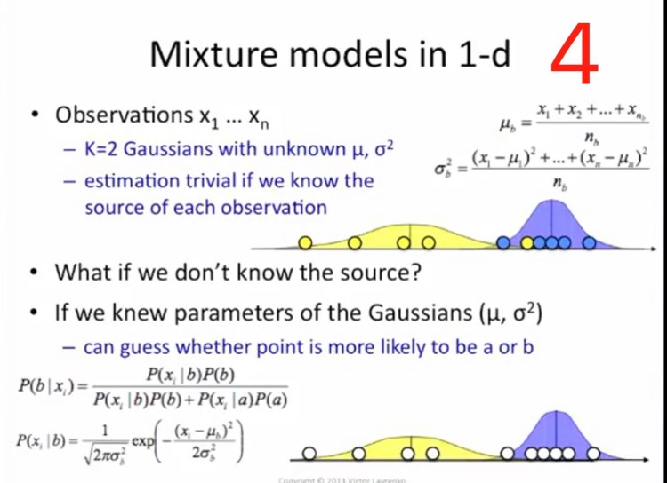 - EM关于一个轻量级的高斯混合模型求解的视频 (Victor Lavrenko, 时长:~14 min)