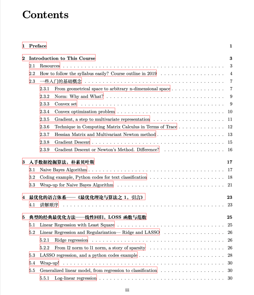 起手编写这个 Course Note 是 2020 年的暑期——此时这门课程已经开设三轮,讲授的内容和顺序 大体稳定下来,所以为方便教学计,便准备了这个 Course Note。不同于我另外一门研究生课程《生物文 本挖掘与知识发现概论》,这门课程的 Course Note 准备得较为梗概,大部分章节虽援引了我 Slides 中 的讲授内容,少数章节只给了讲解思路和参考来源。譬如,在讲解最优化算法部分时,我挑选了陈宝林《最优化算法》的第一章和第七章,在讲解 SVM 时主要依赖黑板推演。既然很多章节所参考的内容都可 以找到较为完整的参考源,学生们只需要按图索骥找到相关教材即可。