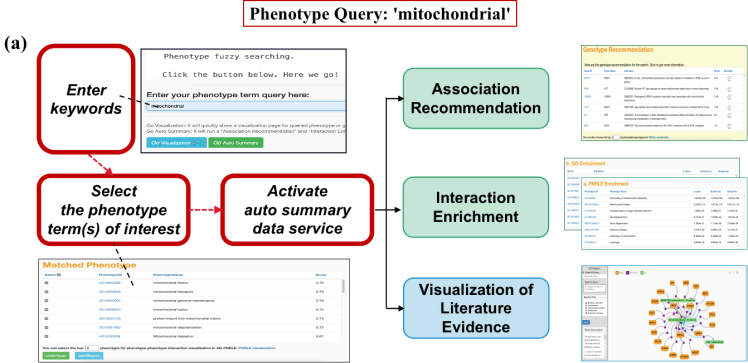 - The user input the keyword “mitochondria”, and the back-end would list all the phenotype entries including the queried terms. (From GO/HPO/MeSH)