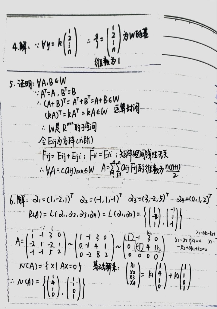 《线性空间和子空间的习题》——讲义摘拍,Dec/2023。