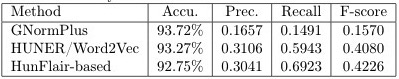 We developed a HunFlaire-based unsupervised method, and compared the performance with other known gene tagger on rice gene mentions of OryzaGP (29,098 keywords among 13,136 PubMed abstracts).